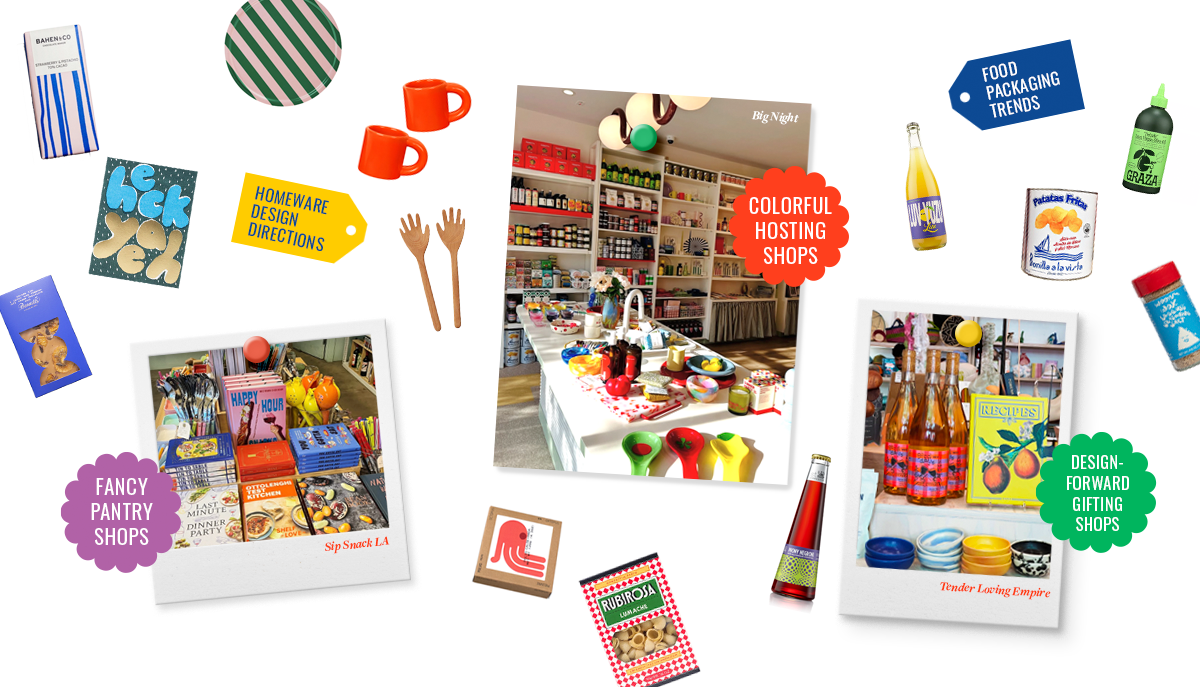 I analyzed more than 20 thriving retailers in the gifting/entertaining/home décor space to identify product and packaging trends, plus growth opportunities. This research clarified that millennial and Gen Z shoppers were the most promising new audience. Moodboards synthesized the aesthetic findings, highlighting demand for vibrant color, vintage-inspired packaging and lifestyle-driven merchandising.